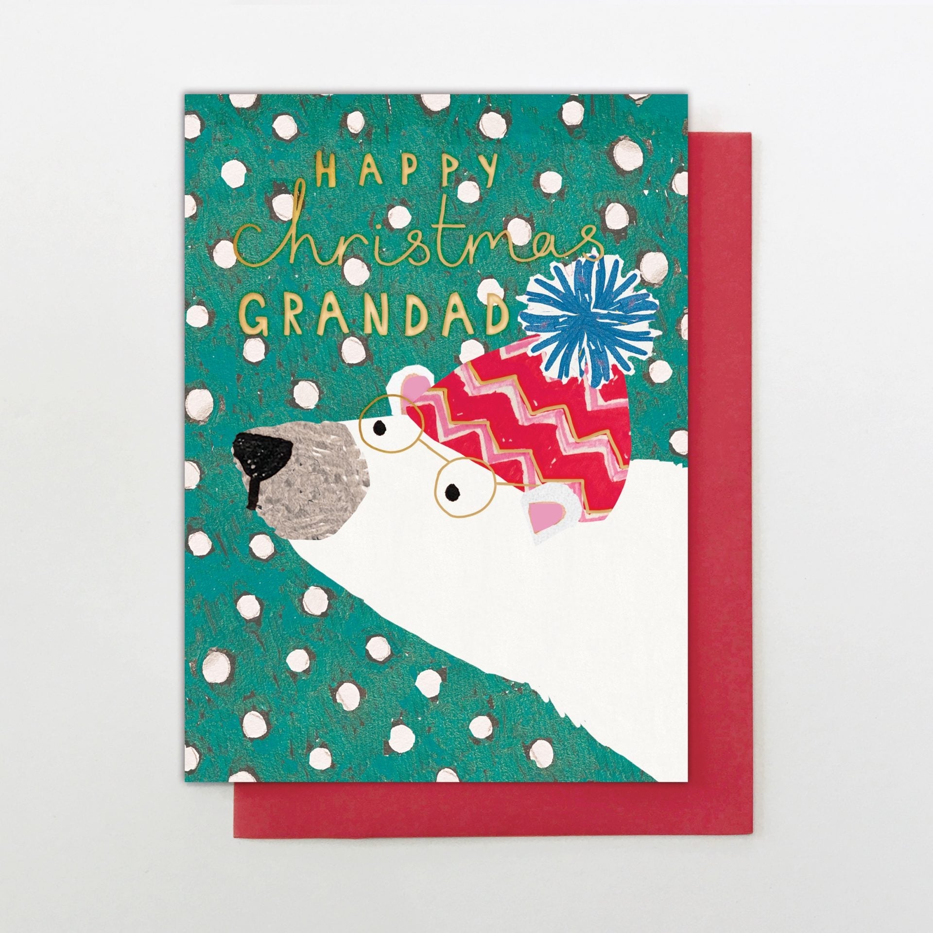 Raised gold foil detail.